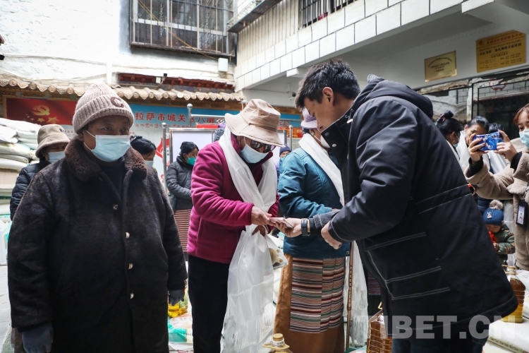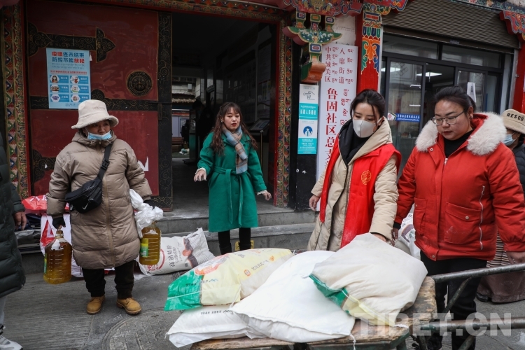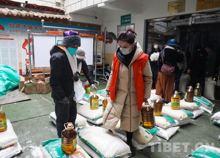 中國西藏網訊 近日,在西藏自治區拉薩市城關區八廓街道魯固社區居委會的院子里,不時傳來陣陣歡聲笑語,在院子的正中間,一袋袋大米、面粉,一桶桶食用油碼放整齊。