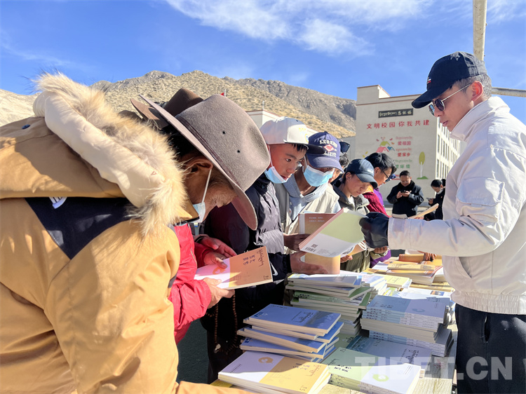 在送“書籍” 現(xiàn)場,《西藏文學》《西藏文藝》《邦錦梅朵》三個編輯部工作人員為現(xiàn)場群眾和當?shù)?span style="text-align: center; background-color: rgb(253,242,234)">干部贈送書籍,當?shù)厝罕姾蛯W生們紛紛前來翻看尋找自己喜歡的書籍,大家人手幾本書。“我平時喜歡閱讀藏文文學作品,這次要了兩本文學相關書籍拿回家閱讀”17歲的益西巴珍說。據(jù)了解,此次活動西藏文聯(lián)向熱愛閱讀的群眾和學生共贈送1500本(冊)文藝書籍和期刊。