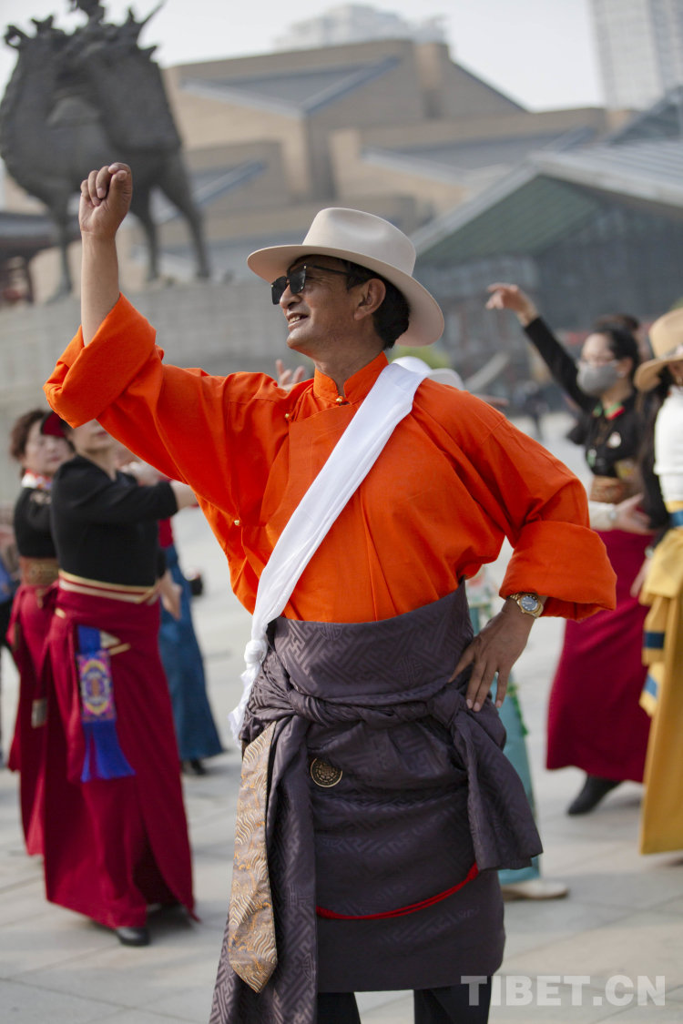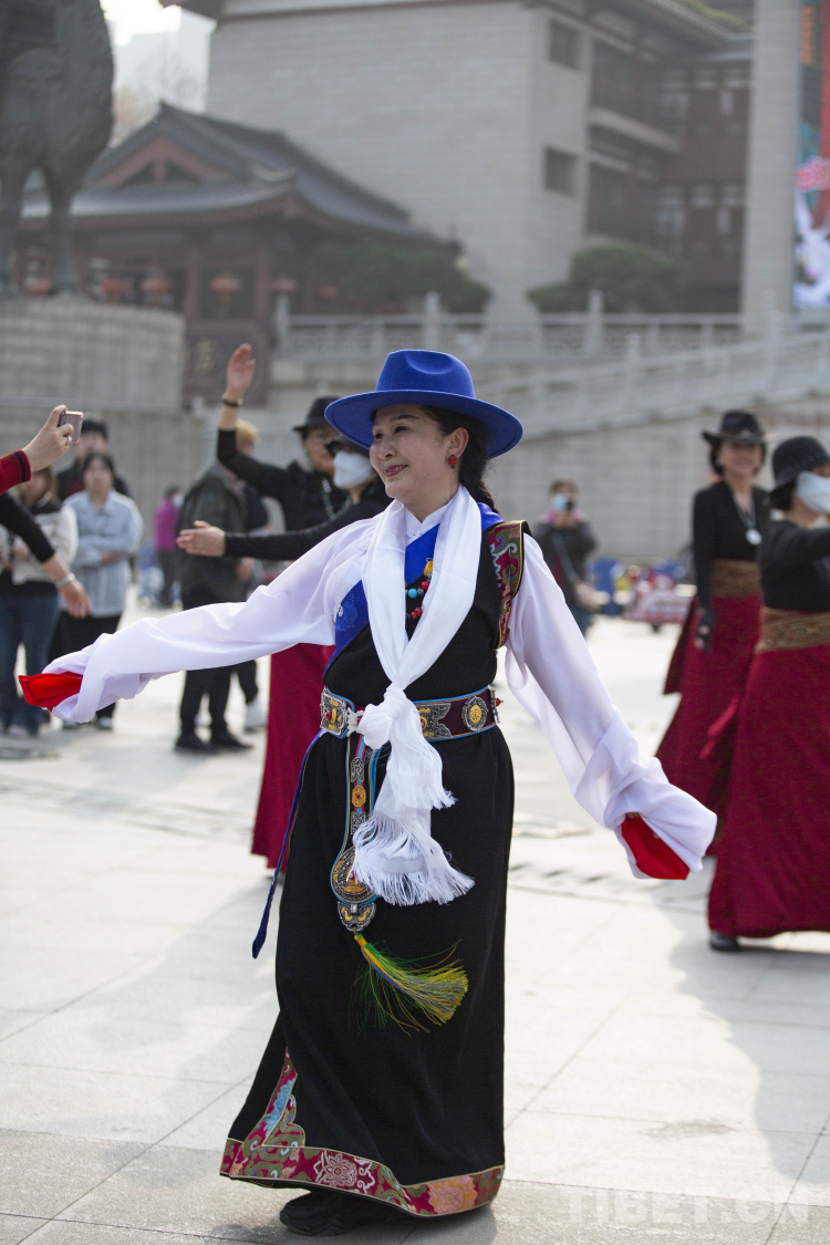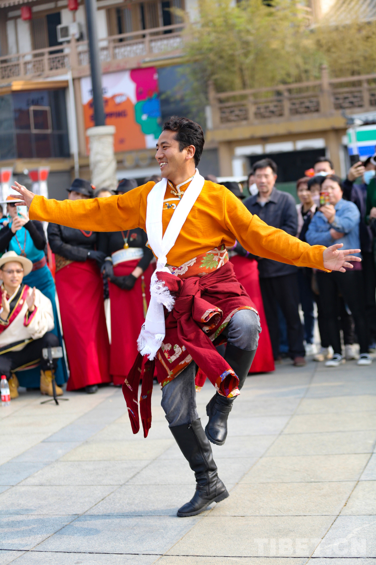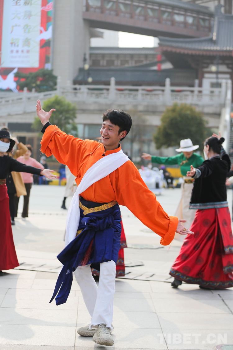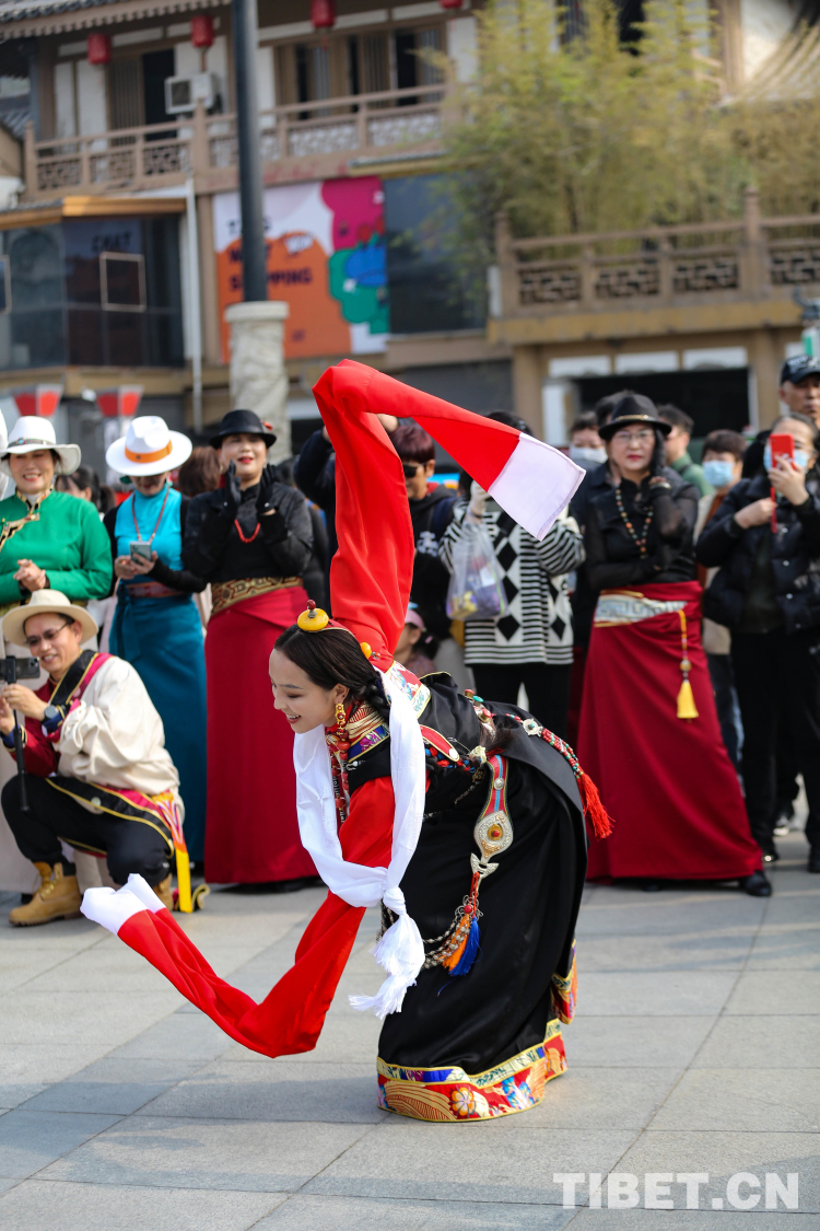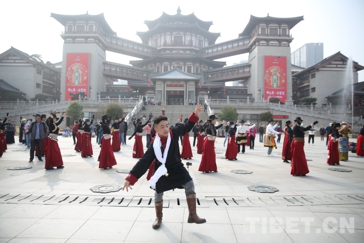 中國西藏網訊 3月21日,由新的社會階層人士服務團三分團主辦、北京藏地神韻非物質文化傳播發展公司承辦的傳統藏舞公益推廣活動在西安舉辦。多位藏舞傳承人與藏舞愛好者齊聚西安大唐西市進行公益推廣交流。鍋莊、伊舞,《歡迎你們到來》《舞動青春年華》《吉祥的哈達》……一曲接著一曲,舞出了藏族舞蹈的無限魅力!(中國西藏網 記者/呂靜 姚浩然)