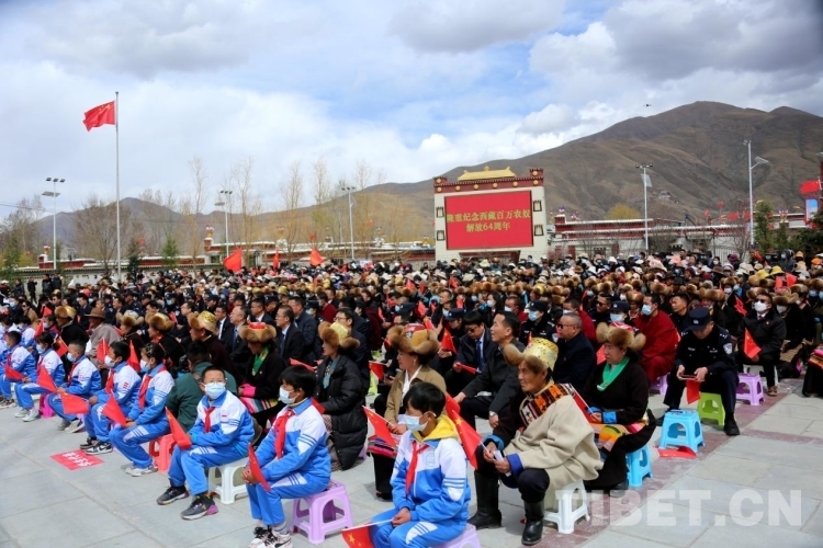 圖為各界代表和克松群眾慶祝西藏百萬農奴解放64周年 攝影:王佳豪