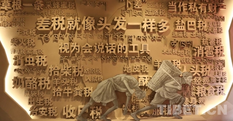 圖為西藏民主改革第一村陳列館改陳展內利用浮雕的方式生動展現了民主改革前“農奴”背負沉重的差稅 攝影:王佳豪