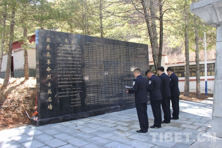 圖為西藏邊檢總站執法調查支隊執法調查七隊民警向亞東縣革命烈士英名墻默哀 攝影:李渠成
