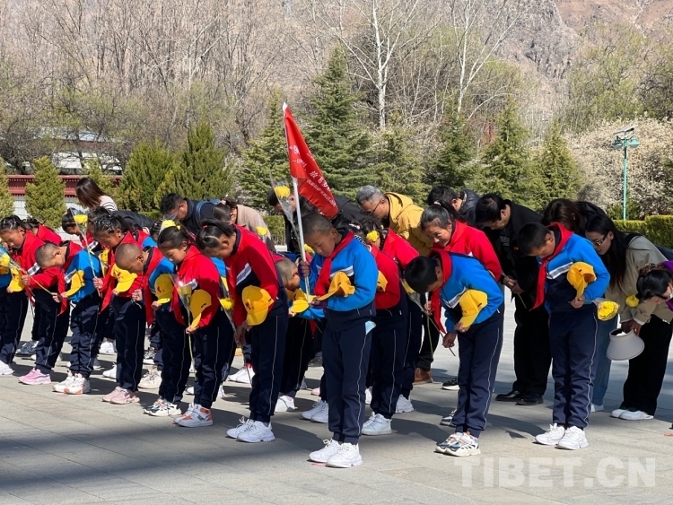 中國西藏網訊 4月12日上午,由西藏煙草駐日喀則市昂仁縣第十一批駐村工作隊、江蘇商會黨委、冬日暖陽愛心公益組織承辦的“領略非凡世界、放飛多彩夢想”公益活動工作組帶領來自西藏日喀則市昂仁縣多白鄉的30名小學生來到位于拉薩市西郊的拉薩烈士陵園緬懷革命先烈。