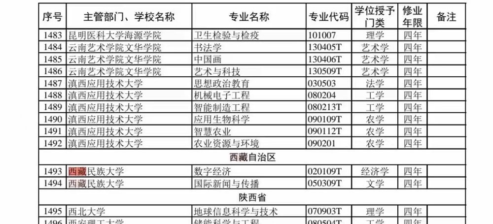 經過不懈努力,近日喜報傳來,西藏民族大學財經學院獲教育部批準新增數字經濟專業,這是西藏首個數字經濟本科專業,學制四年,授經濟學學士學位。