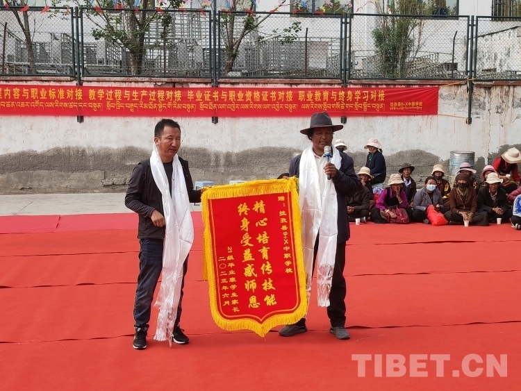 活動現場,學生家長代表向學校贈送錦旗并發表感言。“感謝拉孜縣9+X中職學校培養了我的孩子,經過學校的精心培養,讓家人操碎心的孩子如今依靠從學校學到的技藝找到了一份滿意的工作,這讓我一家人感到很欣慰。”學生家長代表白瑪有感而發,“希望在場的孩子們也通過發揮自己的優勢,在社會上找到一份心儀的工作,同時真心祝福學校越辦越好。”