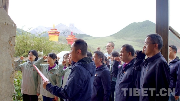 圖為“同心·共鑄中國心”昌都行第十一團(tuán)在洛隆縣重于泰山烈士紀(jì)念碑前重溫入黨誓詞,開展主題黨日活動。(洛隆融媒提供)