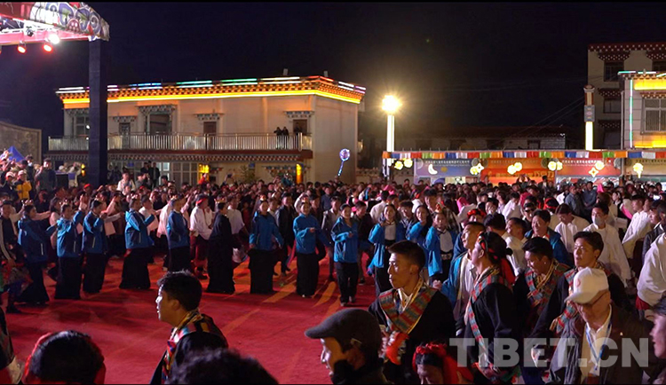 歌舞晚會結尾時,出席晚會的嘉賓同現場的一千余名群眾及演職人員踩著優美動聽的弦音,共跳曾榮創“最大弦子舞教學課堂”世界紀錄認證,集文化、歷史、民俗元素于一身的弦子舞。(中國西藏網 供稿/芒康縣藝術節組委會辦公室)