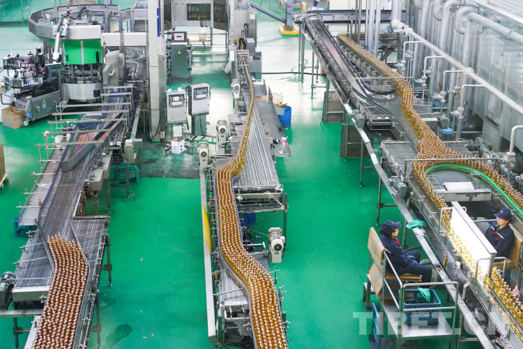 圖為西藏天地綠色飲品發展有限公司生產車間內,西藏牌啤酒正生產灌裝 攝影:趙振宇