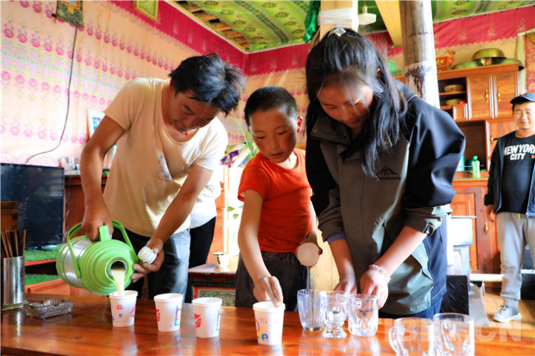 在另一戶村民家里,我們見(jiàn)到了德吉拉姆姐弟倆。姐弟倆非常有禮貌又主動(dòng)熱情地為我們準(zhǔn)備酥油茶、讓座、指路,顯然是父母的“得力小助手”。他們做起事來(lái)一板一眼、舉止落落大方,給我們留下很深刻的印象。