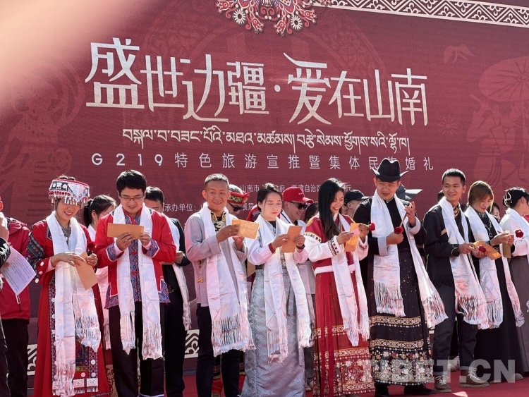 中國西藏網 9月22日,由西藏山南市人民政府,西藏自治區旅游發展廳共同主辦的“盛世邊疆·愛在山南”G219特色旅游宣推暨集體民族婚禮在山南市乃東區啟動。西藏自治區旅游發展廳,山南市旅游發展局、民宗局等相關部門以及各縣(市、區)分管領導和來自全國各地的23對少數民族情侶、夫妻共同參加了此次活動。