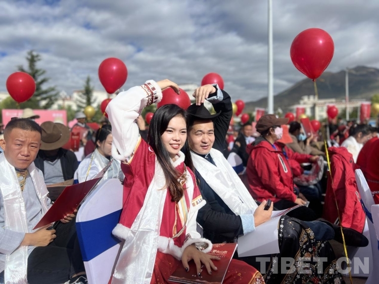 圖為民族團結模范夫妻現場證婚 攝影:德吉卓瑪