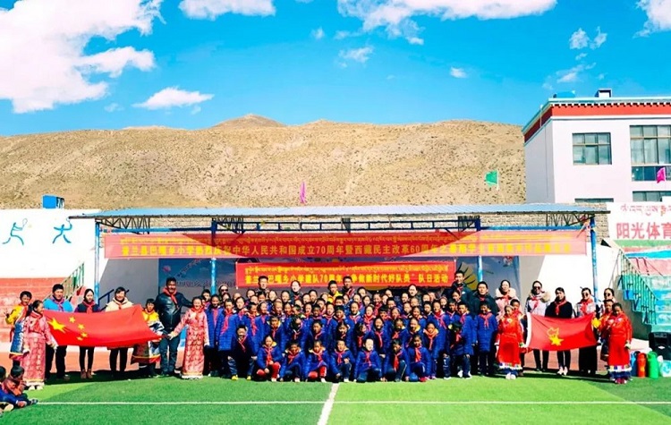 圖為巴嘎鄉(xiāng)小學舉辦慶祝活動(2021年資料圖) 圖片來源:中國文明網(wǎng)