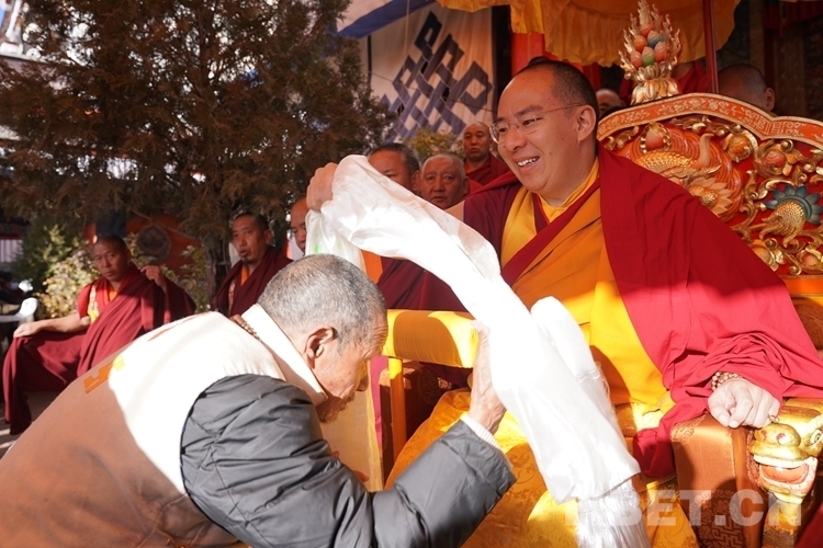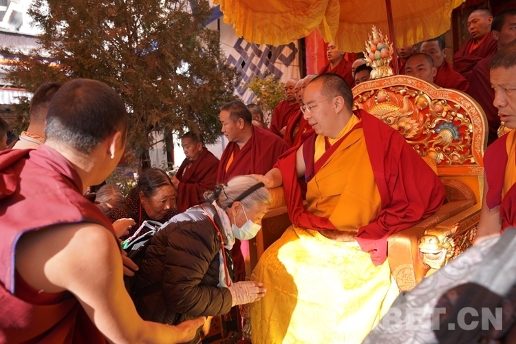 中國西藏網訊 11月13日,全國政協常委、中國佛教協會副會長、中國佛協西藏分會會長班禪額爾德尼·確吉杰布在西藏日喀則市扎什倫布寺多加大院為信教群眾摸頂賜福,這是近年來規模最大的一次班禪摸頂賜福活動。