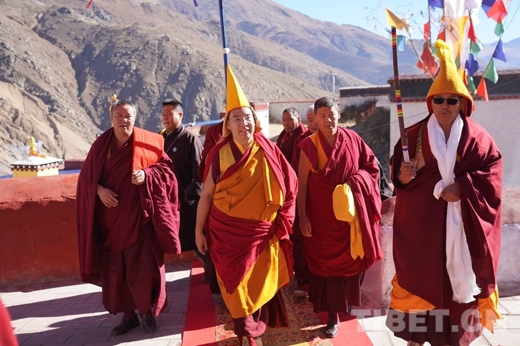 長美堅寺位于白朗縣洛江鎮洛江村,該寺廟創建于14世紀,尊奉薩迦派,后改宗格魯派。11月24日,班禪前往該寺禮佛講經,為僧眾摸頂賜福。
