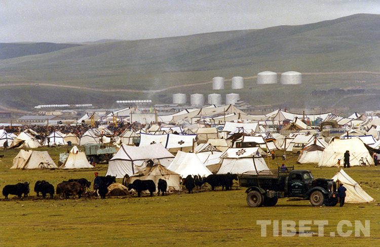 在那曲賽馬盛會(huì)上,臨時(shí)搭建起的帳篷城(唐召明1987年攝)