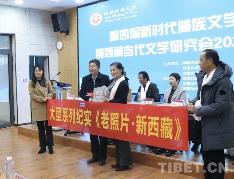 西藏民族大學(xué)校友、作家陳琳女士向西藏民族大學(xué)文學(xué)院贈(zèng)送了她主編的6卷本大型系列紀(jì)實(shí)影像集《老照片·新西藏》。她表示,作為西藏文學(xué)的一名創(chuàng)作者,首先要思考為誰去寫、寫什么的問題,作家應(yīng)該堅(jiān)持為人民而寫作的立場(chǎng),堅(jiān)持從民間和現(xiàn)實(shí)生活中汲取力量。