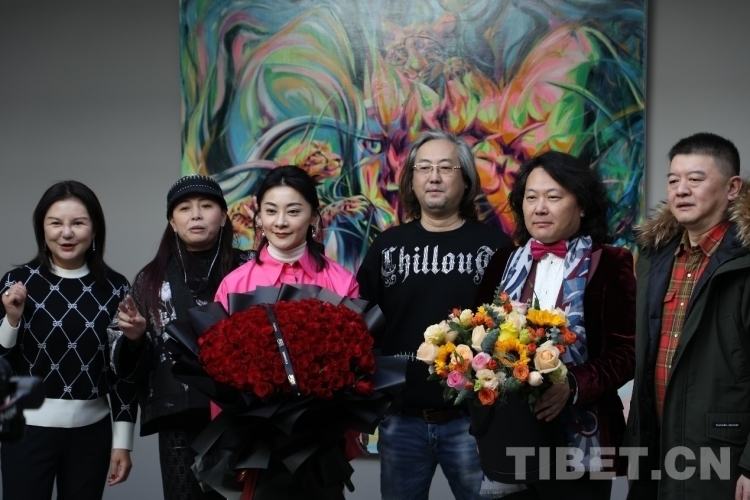圖為開幕式上趙文靜(左三)與朋友合影 攝影:登真巴珍