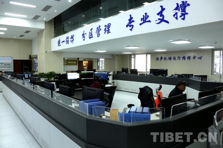 圖為春運(yùn)首日,拉薩機(jī)場(chǎng)運(yùn)行指揮中心內(nèi)工作人員有序指揮各項(xiàng)工作 攝影:王佳豪