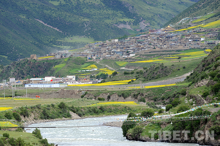 羊秀白嘎風景區的美麗景觀。“蘇毗古遺址群落”就廣泛分布在這里。前面流淌的是杰曲河水(唐召明2014年7月9日攝)