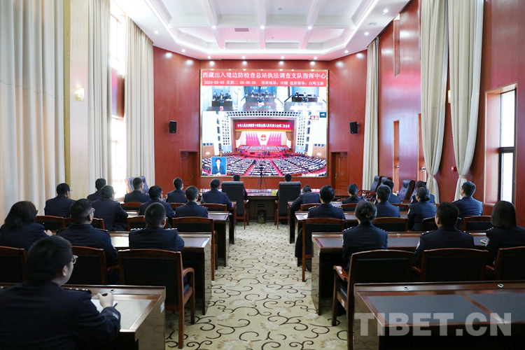 中國西藏網訊 3月5日上午,十四屆全國人大二次會議在北京開幕。西藏邊檢總站執法調查支隊組織各級民警集中收看了開幕會實況,重點收看并學習了李強總理在開幕會上所作的《政府工作報告》。