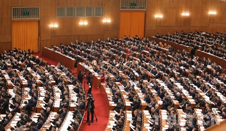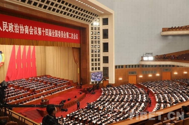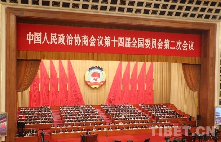 圖為全國政協十四屆二次會議第二次全體會議現場 攝影:桑吉