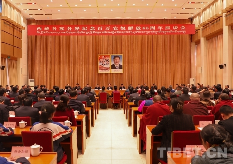 中國(guó)西藏網(wǎng)訊 3月28日,西藏各族各界紀(jì)念百萬(wàn)農(nóng)奴解放65周年座談會(huì)在拉薩舉行。會(huì)上,翻身農(nóng)奴代表、愛(ài)國(guó)統(tǒng)戰(zhàn)人士及其后代代表、學(xué)生代表、黨外知識(shí)分子代表、宗教界代表等紛紛發(fā)言。