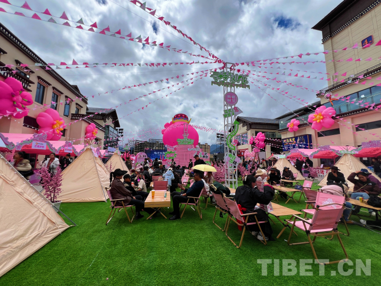 圖為游客在主會場工布天街公園“桃花嘉年華”現場體驗營地。攝影:德吉卓瑪