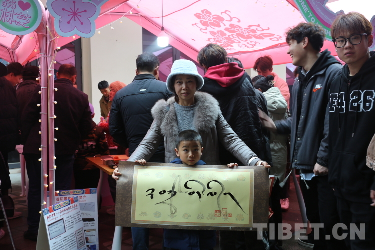 圖為游客收到林芝市職業技術學校學生的書法作品。攝影:旦曲