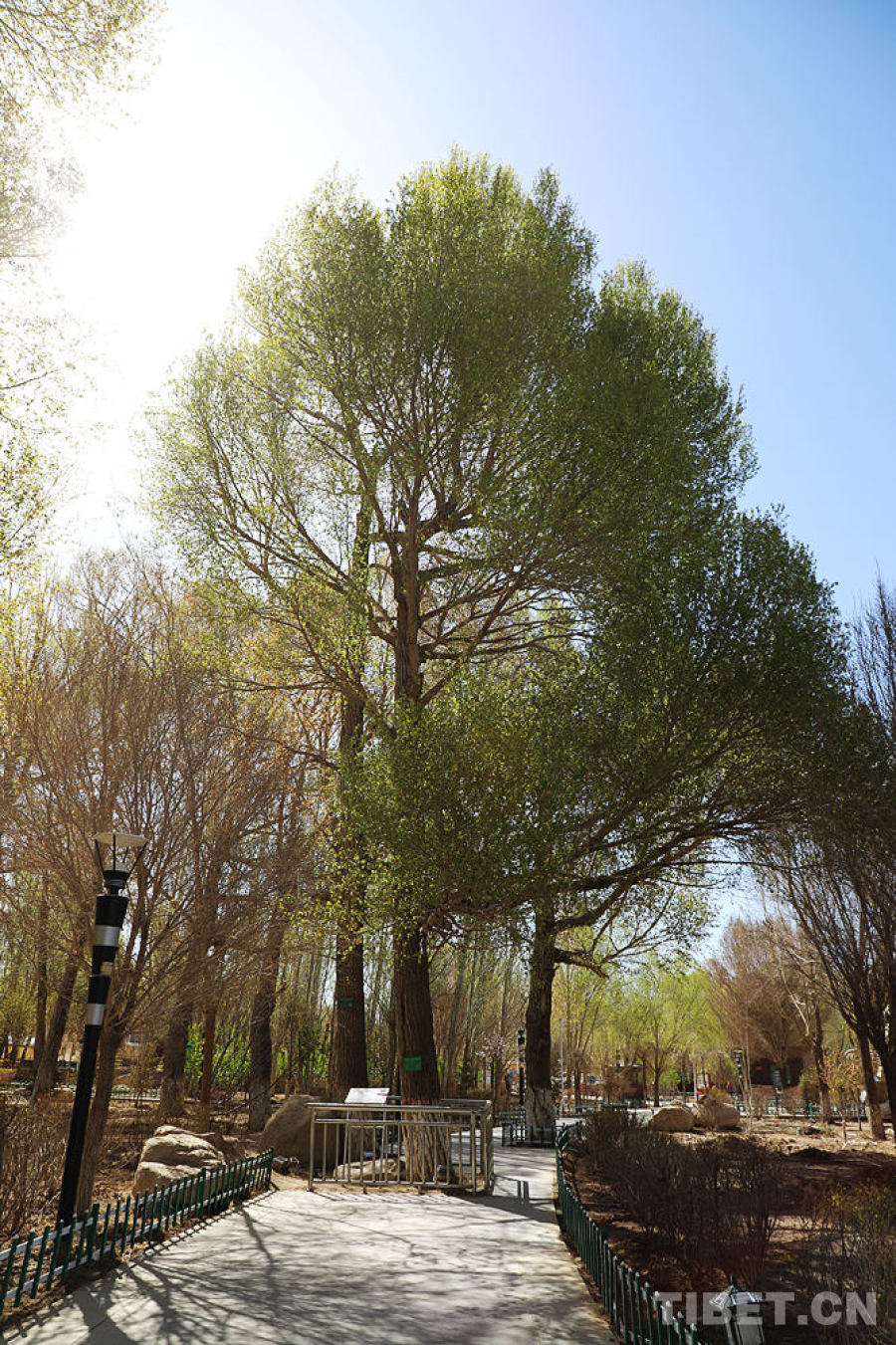 走過一座橋右轉,不遠處就是“將軍樹”,據介紹這是1954年慕生忠將軍親手栽種的青楊樹。