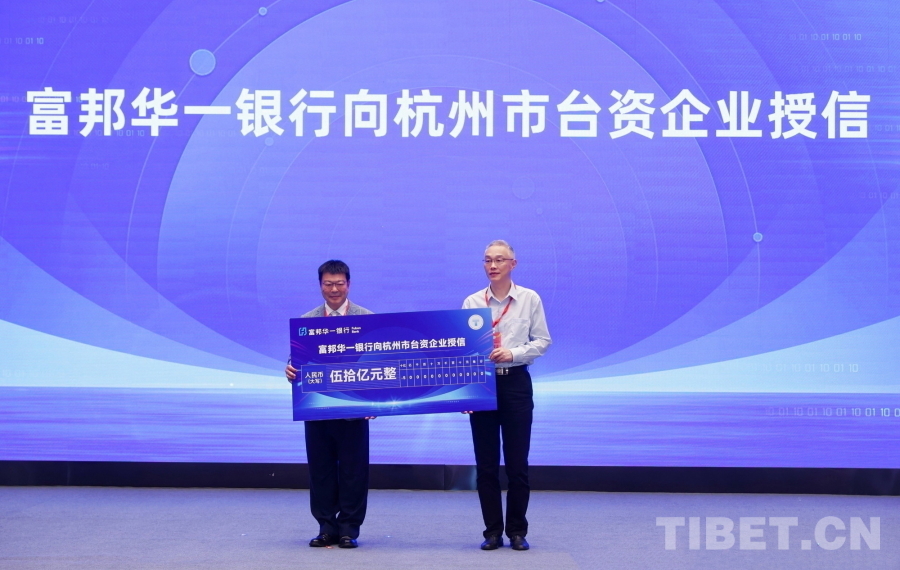 圖為浙江·臺灣合作周海峽兩岸(杭州)數字經濟產業對接會上富邦華一銀行向杭州臺資企業授信50億元 攝影:劉莉
