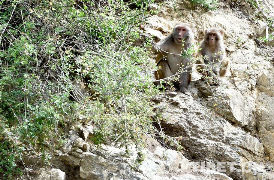 資料圖:達古峽谷里的藏獼猴
