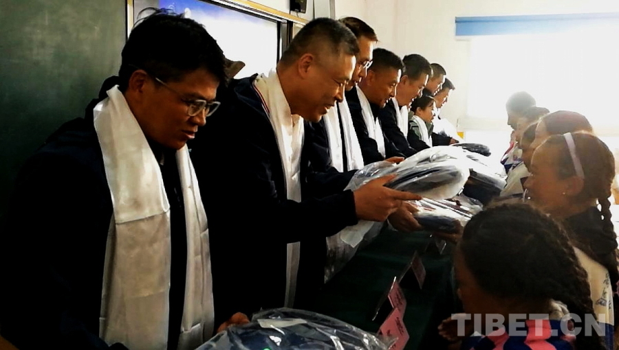 圖為醫療專家們向四川省甘孜州石渠縣第二完全小學學生贈送學習用品 攝影:劉莉