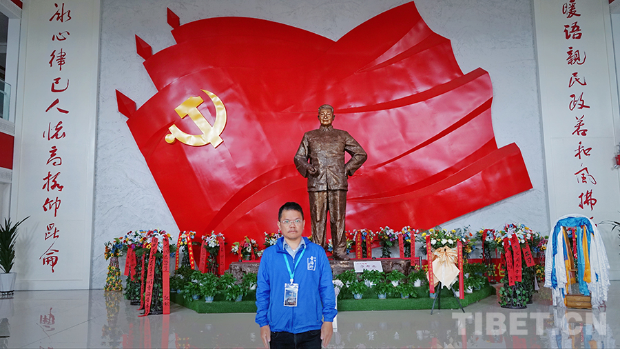 圖為青海省港區(qū)政協(xié)委員、本次研學(xué)團副團長王偉杰在尕布龍時代楷模紀(jì)念館。攝影:李泓慶