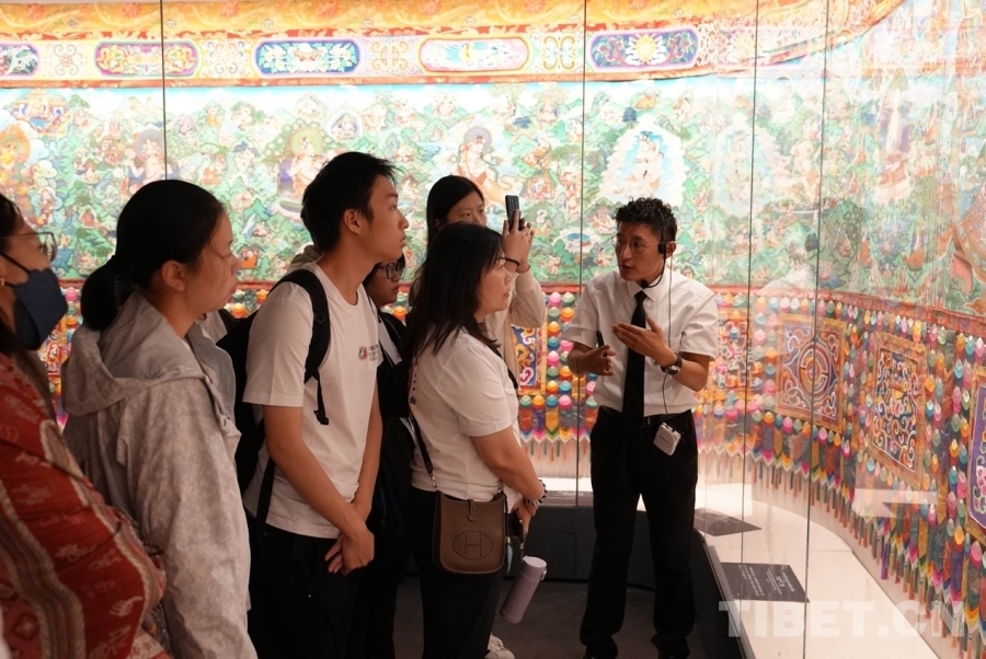9時許,師生們來到青海文化博物館參觀大家很快就被《中國藏族文化藝術彩繪大觀》吸引了目光,紛紛駐足觀看在藏文化博物館中,他們仿佛穿越時空,沉浸于古老而神秘的藏文化之中精美的唐卡、獨特的服飾、獨具特色的房屋建筑,無一不讓他們感受到中華文化的博大精深。