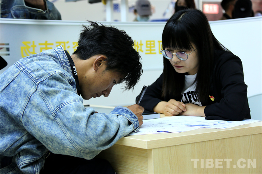 招聘會現(xiàn)場設(shè)有咨詢區(qū)、面試區(qū)及休息區(qū),提供一站式求職服務(wù)。會場內(nèi)的一塊大屏幕吸引了很多求職者的目光,工作人員介紹道:“屏幕滾動展示陜西省、河北省的援藏崗位。我們是鼓勵區(qū)外就業(yè)的,有補貼政策。為爭取這些崗位,我們積極主動與河北省、陜西省對接,通過回訪兩省三企等方式降低崗位招入要求,進一步增加崗位匹配度。”