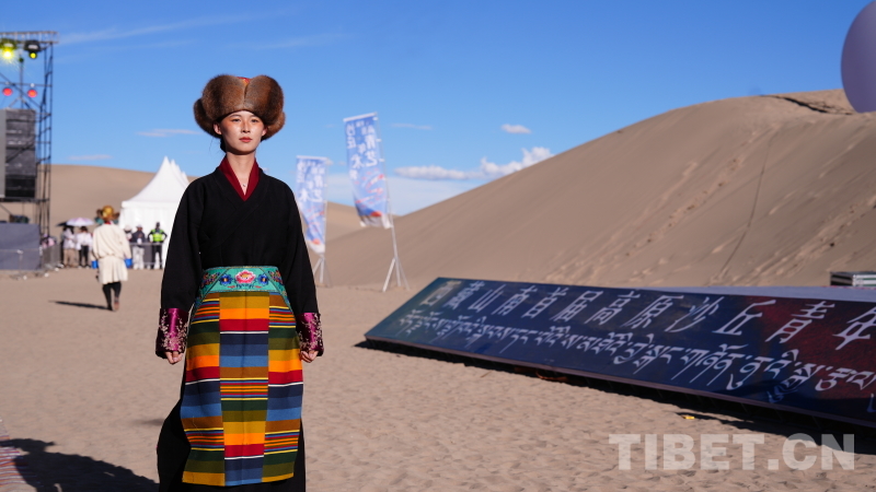 服裝大秀環(huán)節(jié),措美縣“扎扎服飾”、浪卡子縣“羊卓服飾”、隆子縣“珞巴服飾”、錯那縣“門巴服飾”等山南各縣區(qū)代表性服飾,在沙漠的舞臺上綻放異彩,既保留了民族風情,又增添了青春與時尚的元素。模特們身著華服,在沙漠中穿梭,仿佛帶領觀眾穿越時空,感受了一場跨越千年的文化之旅。