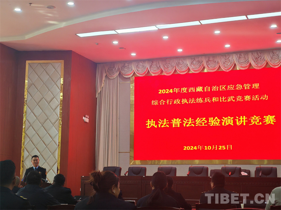 中國西藏網訊 10月25日,西藏自治區應急管理廳開展2024年度應急管理綜合行政執法練兵和比武競賽活動。此次練兵和比武競賽活動共有來自七地(市)選派的7支隊伍共35名執法干部參加。競賽活動設置了執法理論知識考試、執法普法經驗演講、模擬現場安全生產執法檢查、安全生產執法案卷評查等環節,重點考核各級執法人員法律法規知識水平、規范履行執法程序能力、準確發現重大事故隱患、查處安全生產違法行為能力。各代表隊參賽選手發揮各自優勢、密切配合,全面展現了自治區應急管理執法隊伍鐵軍風采。