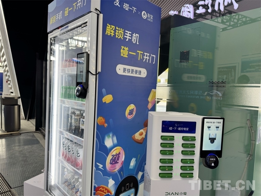 圖為“碰一下”應用支付的設備,不僅可以簡單方便借取充電寶,還可以快速購買商品 攝影:王妍丹