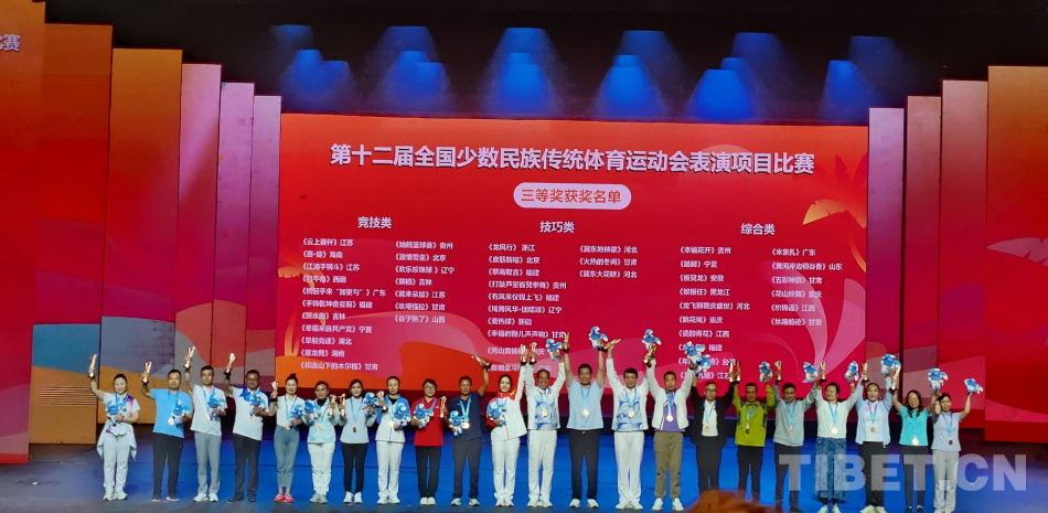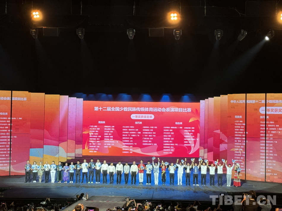 圖為第十二屆全國少數民族傳統體育運動會表演項目頒獎晚會現場 西藏自治區體育局供圖