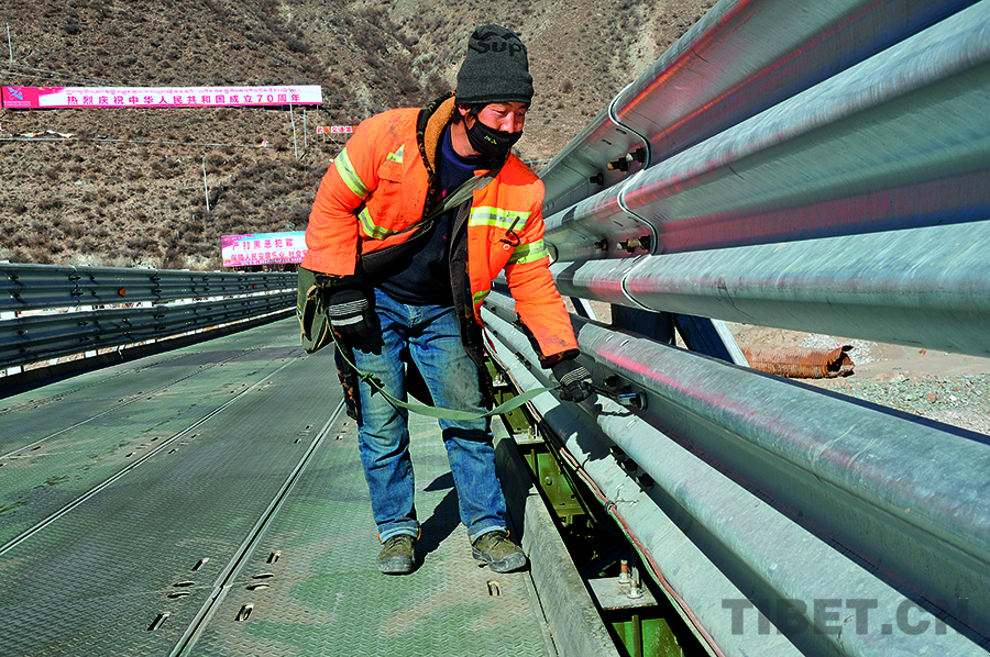 在西藏公路上行車,往往能見到忙碌的養護人。他們要么揮锨清除公路邊的雜物,要么驅車沿途巡查,要么在群山中清除路障,要么在緊鋼架橋護欄上的螺絲。在一條條公路上,川流不息的不僅有車輛,還有勇往直前的徒步者。有沒有人注意到,自己春夏秋冬能在西藏大地上自由穿梭,是因為高原上的大路平坦暢通。為他們保駕護航的,正是那些猶如盛開在山腳下、公路旁黃色小花的養護人。
