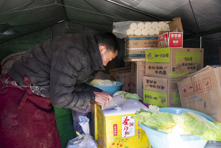 “輕傷的僧尼在我們縣醫(yī)院就診,重傷的僧尼我們第一時間就已轉運至日喀則市人民醫(yī)院,其余的僧尼我們于地震當日就已搭建好帳篷統(tǒng)一在森嘎曲德寺旁的空地進行安置。”在受災僧尼安置點,一間間活動板房整齊排列,僧尼們正在點柴燒水、切大白菜,為今日午餐做準備。
