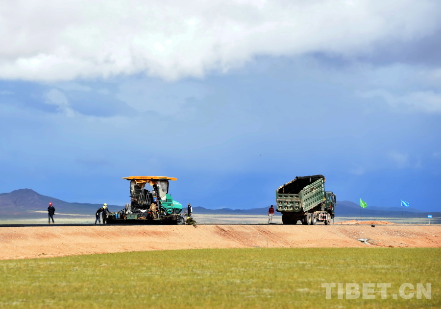 圖為正在鋪筑通往雙湖縣的柏油公路(唐召明2017年7月27日攝)