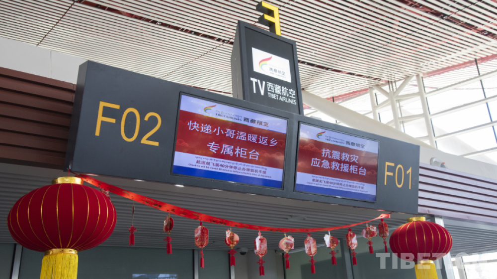 圖為西藏航空開設的快遞小哥溫暖返鄉專屬柜臺和抗震救災應急救援柜臺 攝影:趙振宇