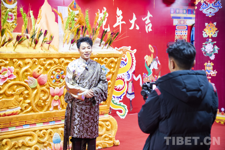 圖為那曲市2025年春節藏歷“木蛇”新年電視聯歡會總導演達瓦次仁接受本網記者采訪 攝影:趙振宇