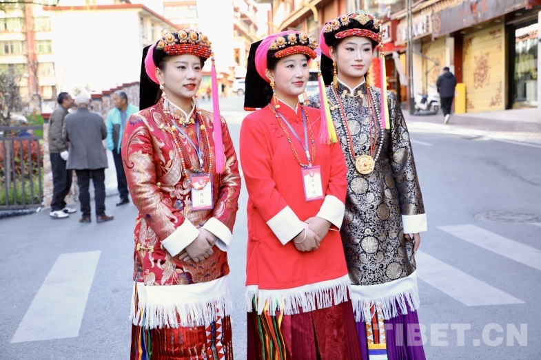 圖為身著當地民族服飾的工作人員 攝影:龍真多吉
