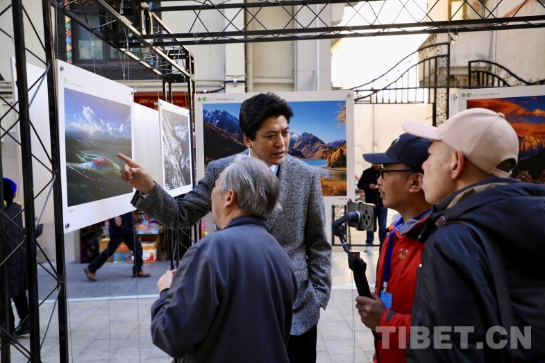 圖為甘孜州政協副主席、州文化廣播電視和旅游局黨組書記、局長劉洪介紹攝影作品 攝影:龍真多吉