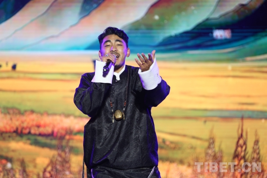 圖為演員旺卓措演唱《格巴桑松》