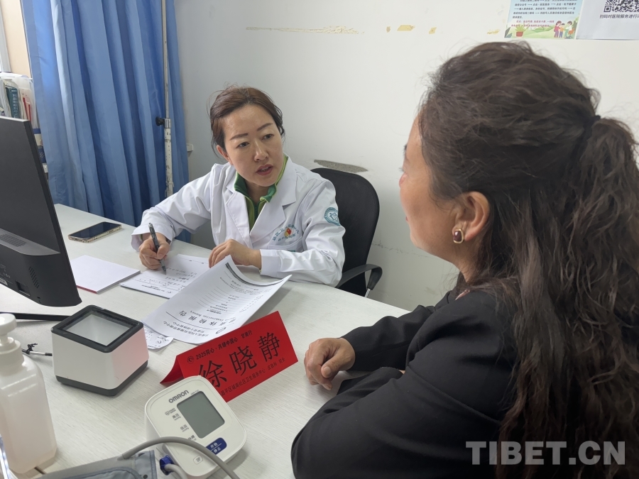 圖為程穎醫(yī)生和迭部縣人民醫(yī)院醫(yī)生溝通患者病情 攝影:張亞男