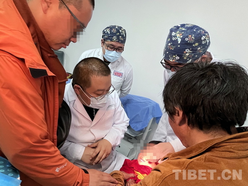 圖為火箭軍特色醫學中心口腔科主治醫師張曉然(左二)與阿壩州人民醫院口腔科團隊正在為被黃鼠狼咬傷的幼兒會診