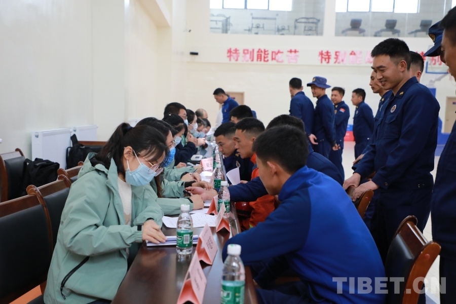 中國西藏網訊 5月18日,參與“同心·共鑄中國心”2025阿壩行大型健康公益綜合服務活動“紅九團紅二連”的醫生們,在四川省阿壩藏族羌族自治州紅原縣消防救援大隊開展義診。